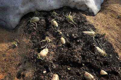 菜園の雪がとけてきました。